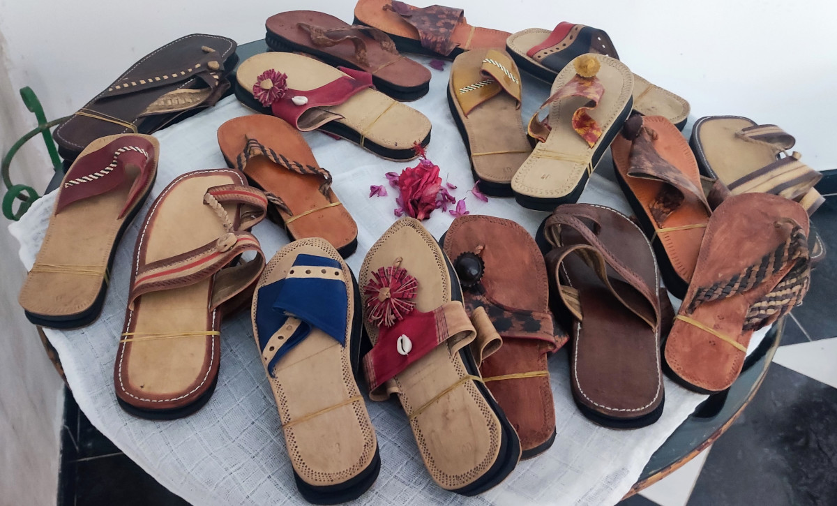 Sandalia Mujer Rufisque. Cuero. Goma. Artesanas. Sandalia de cuero con suela de goma. Coger una talla más grande de la habitual. Todas las sandalias son únicos, no hay ninguna idéntica. Hecha a mano. Origen Senegal.